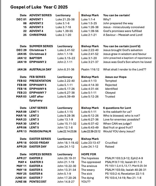 Bishop Mark Calder designed this preaching series on “Hope” for his diocese, and they offer it for anyone else to consider using for preaching or parish Bible studies.